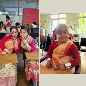 What made the day even more special was the active participation of our teachers, who joined the students in celebration, making it a truly inclusive and joyful experience. The entire campus echoed with laughter, music, and the essence of Assamese culture.